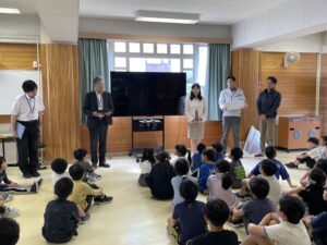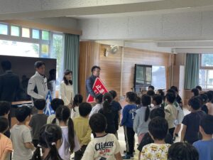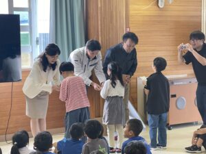 校長先生からご紹介をいただき、早速、子ども達に贈呈。